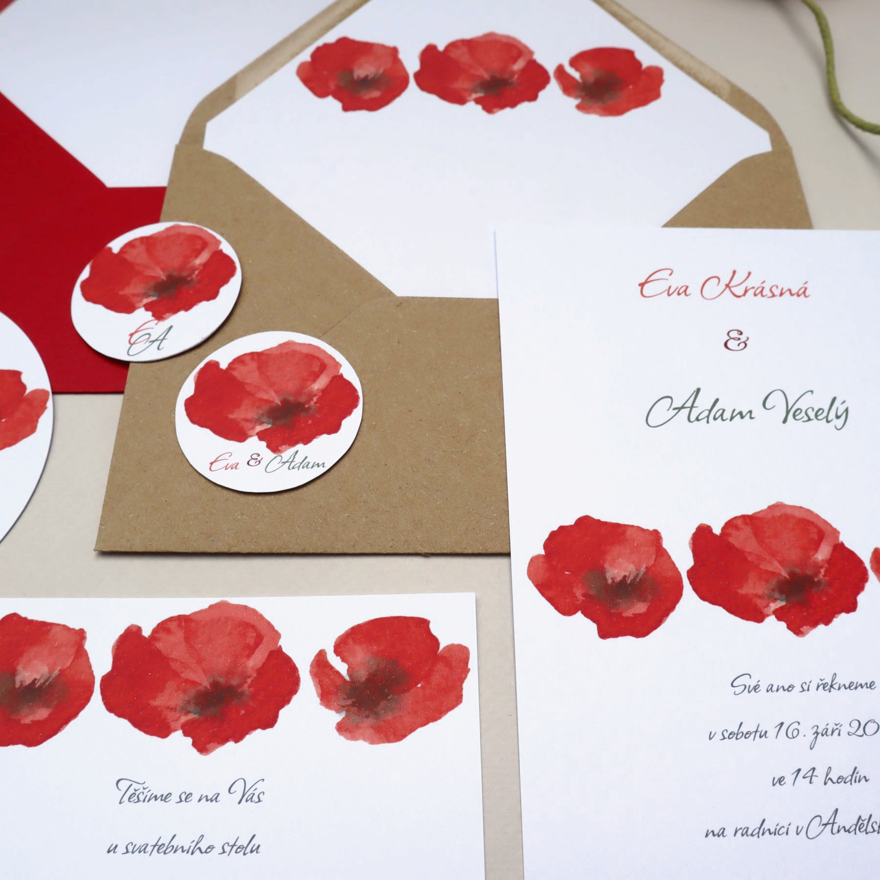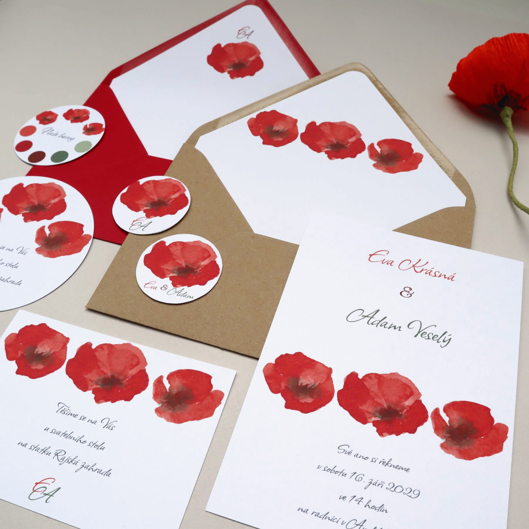 Autorský akvarel s působivým akvarelem květů vlčího máku - nabízím variantu s jedním květem nebo kombinaci tří květů - prohlédněte si fotografie