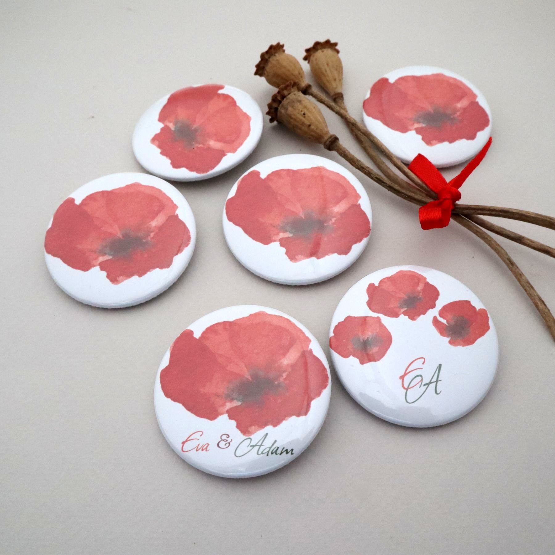 Milá maličkost s motivem květů máku na památku pro Vaše svatební hosty (ale i pro kamarády, příbuzné, kolegy, zákazníky - na oslavách, kurzech, výročích), která bude Vašim milým připomínat Váš krásný svatební den....