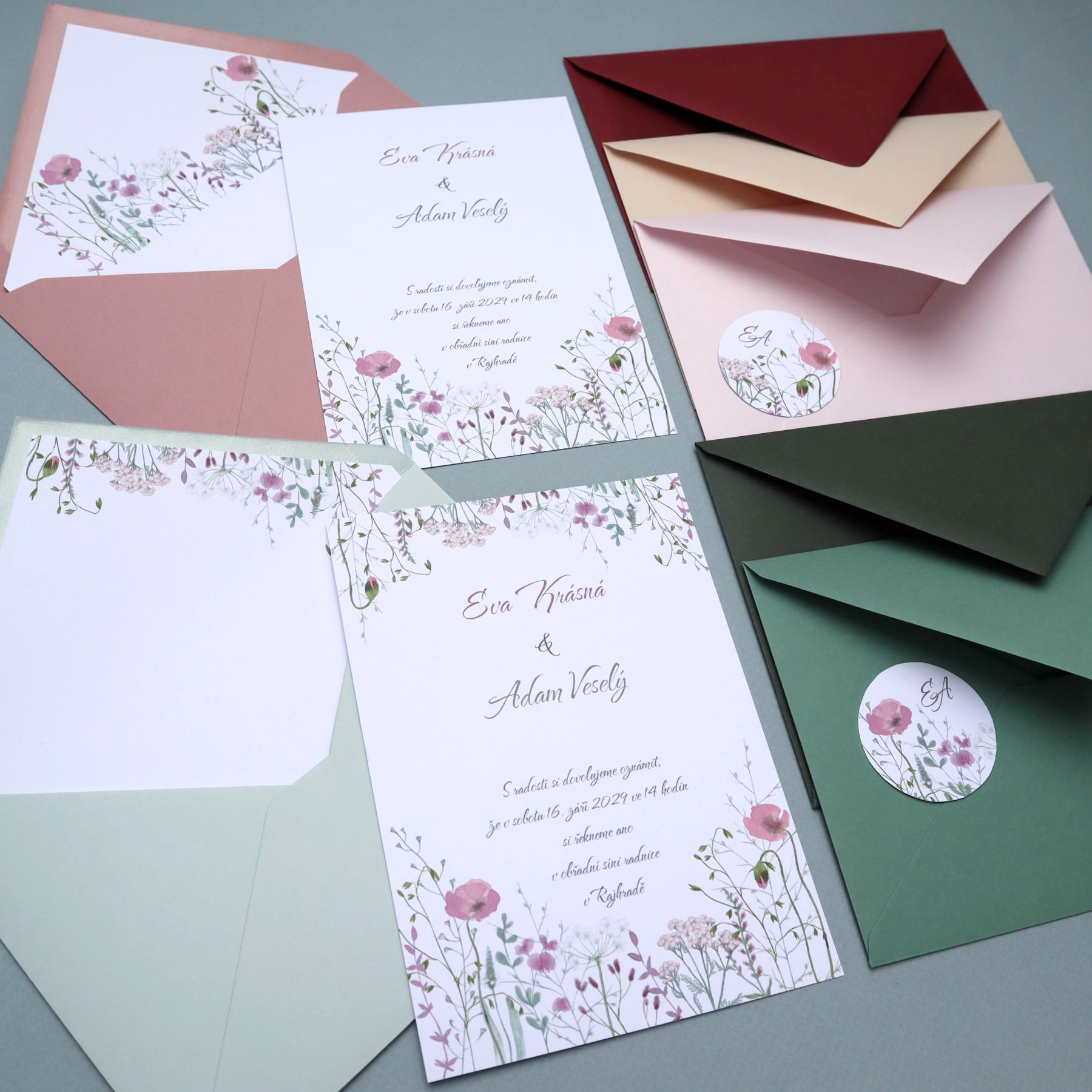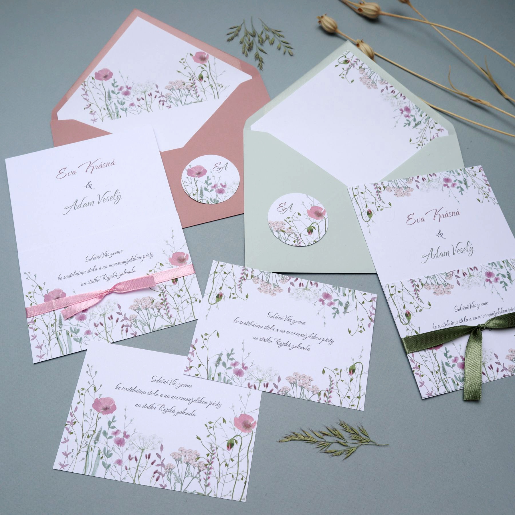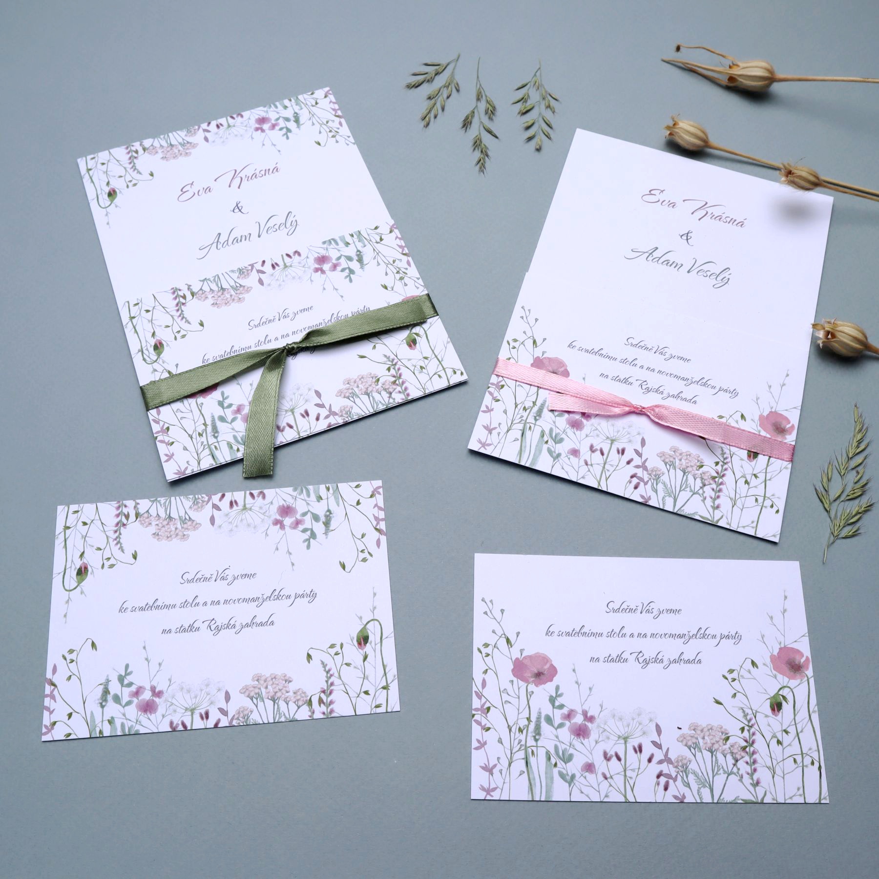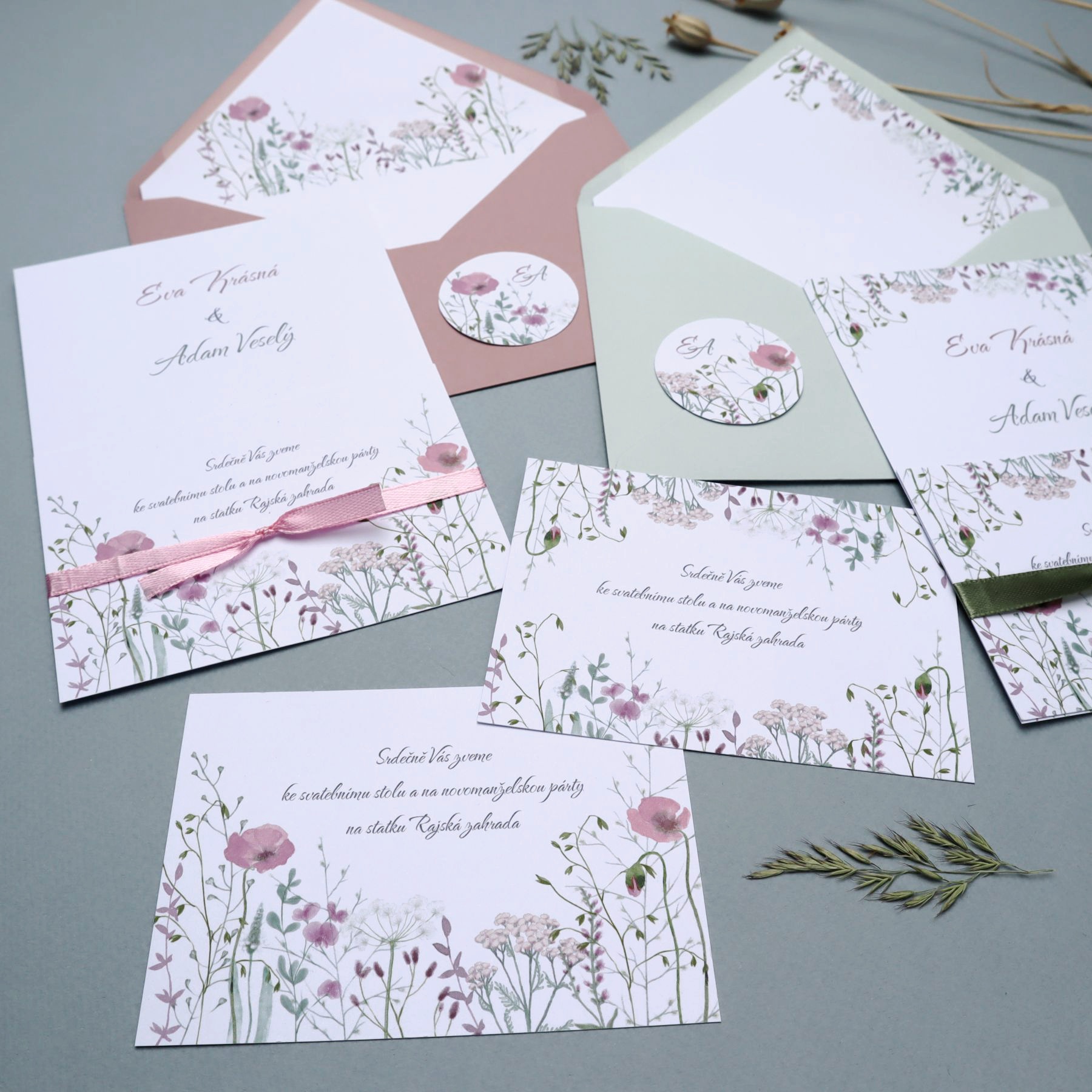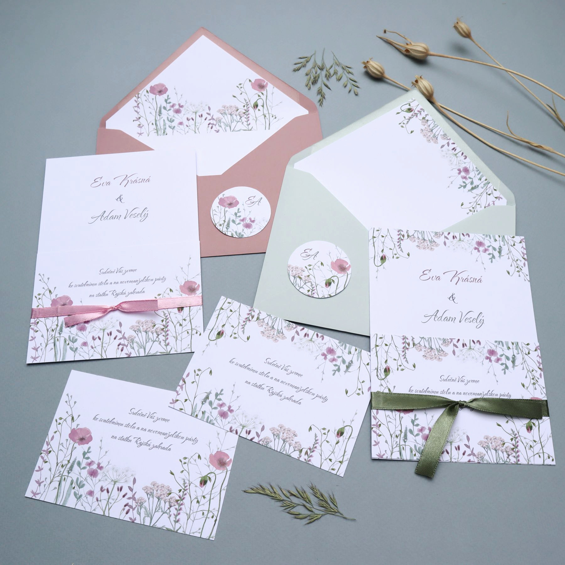 Autorský akvarel s motivem lučních květů v odstínech růžové a pudrové pro Váš svatební den...