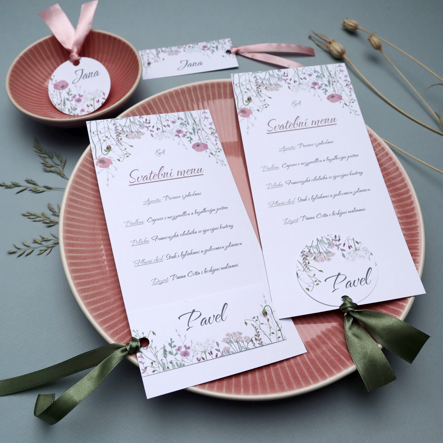 Menu dlouhé se jmenovkou a stuhou - 43Kč