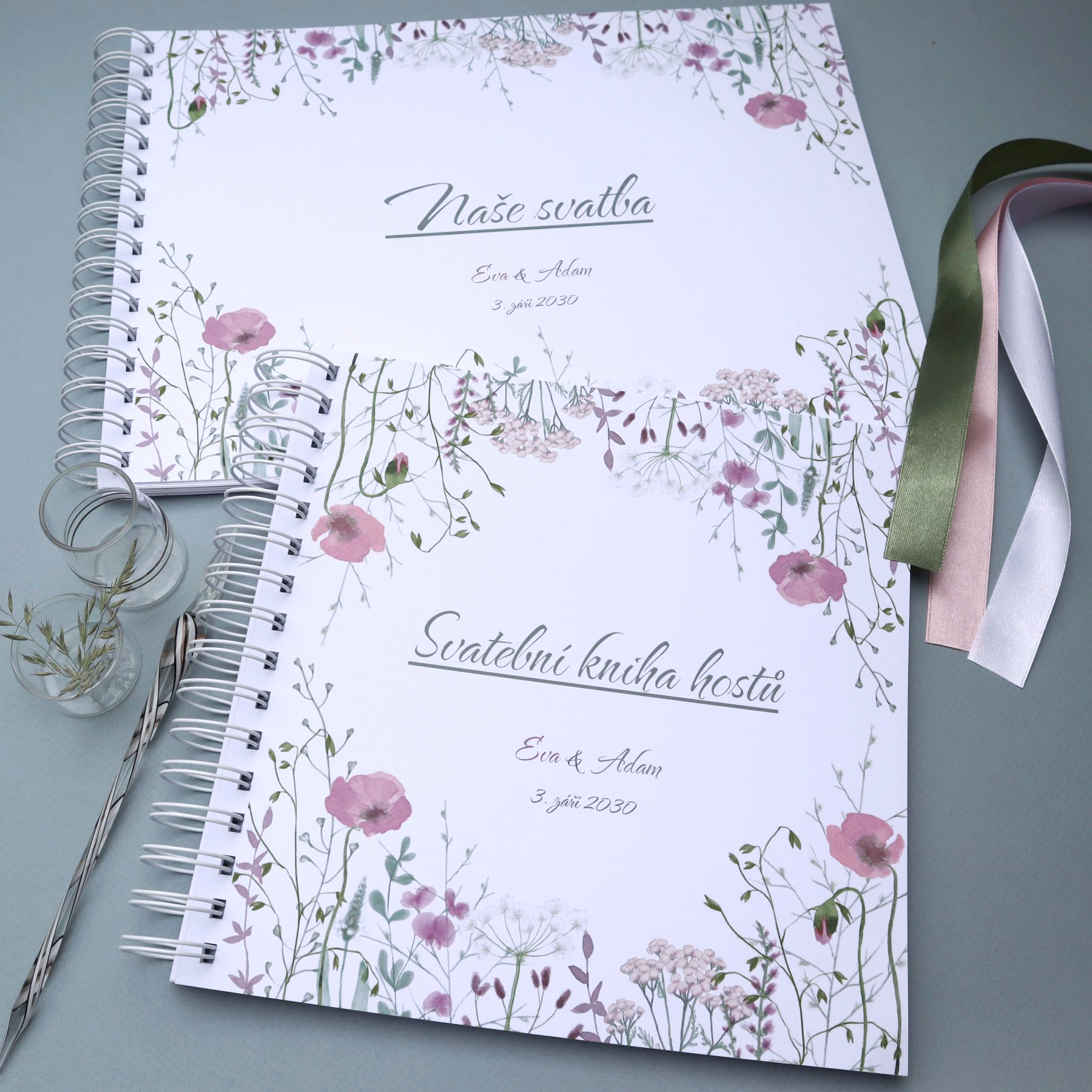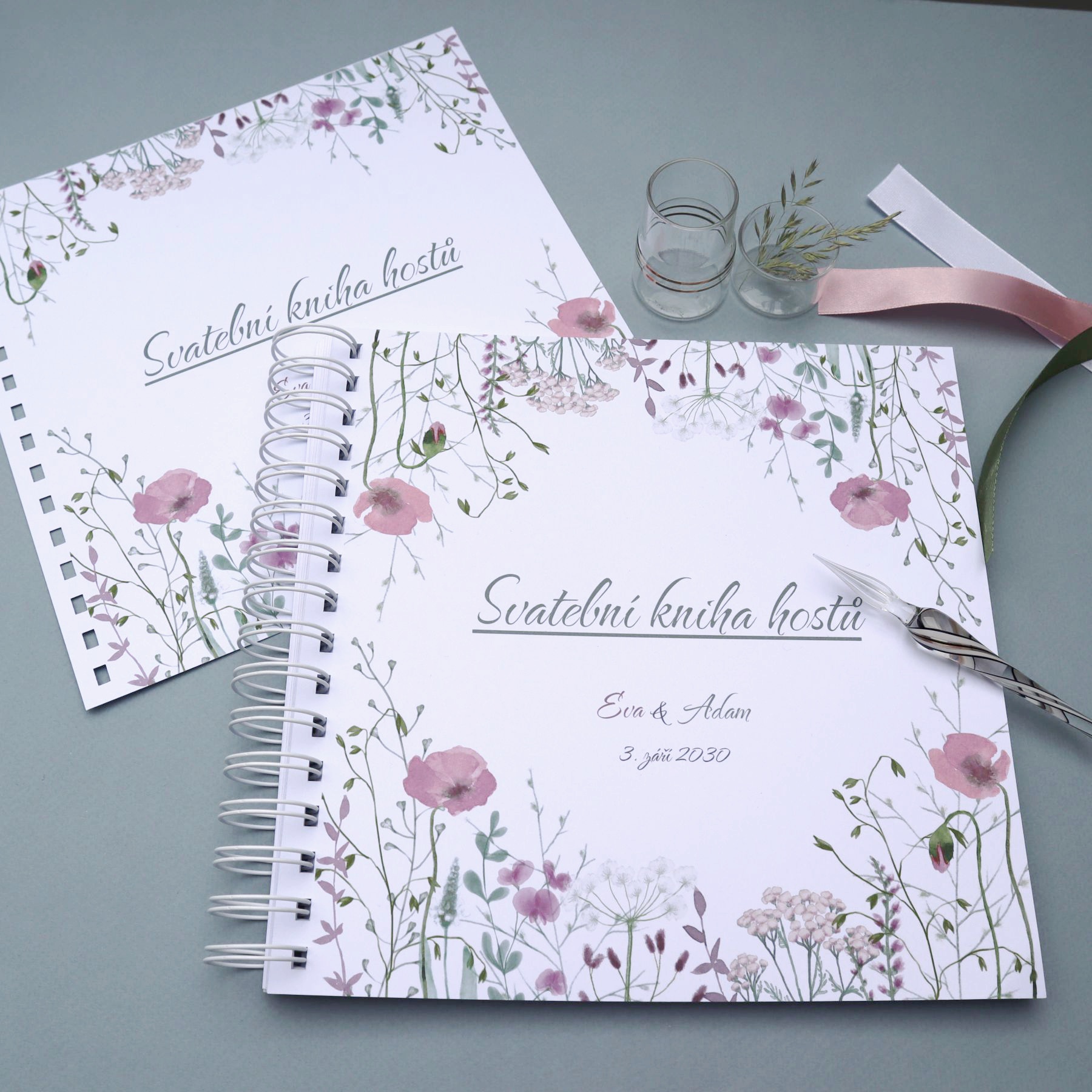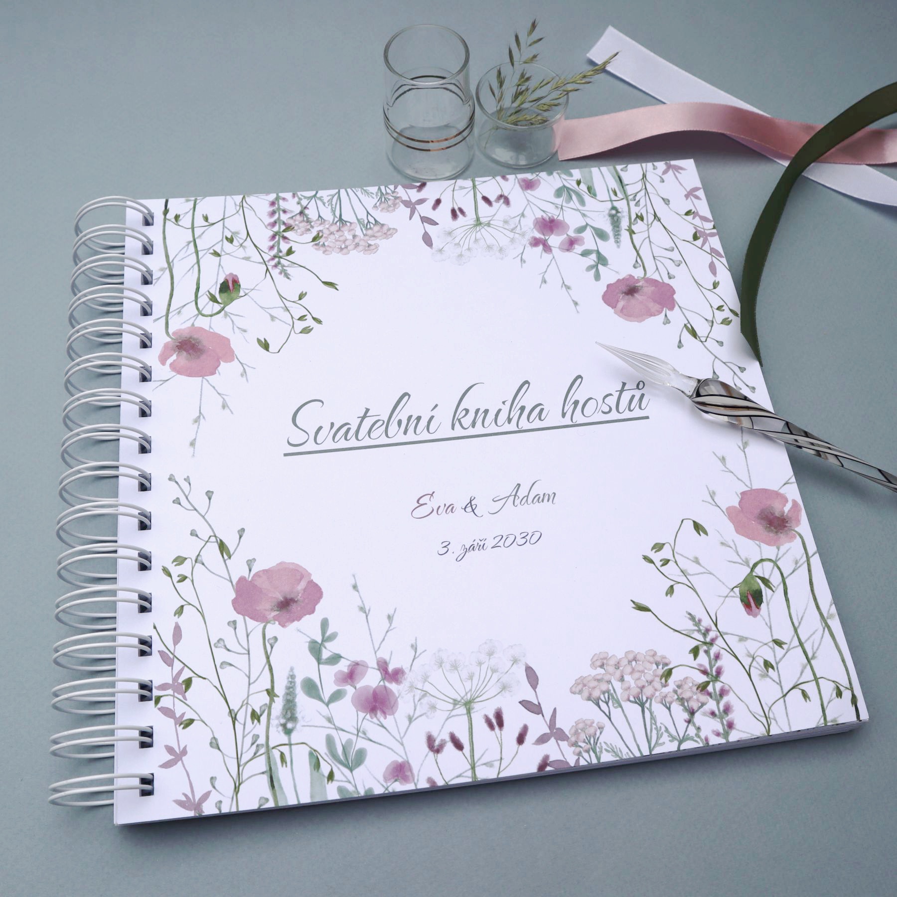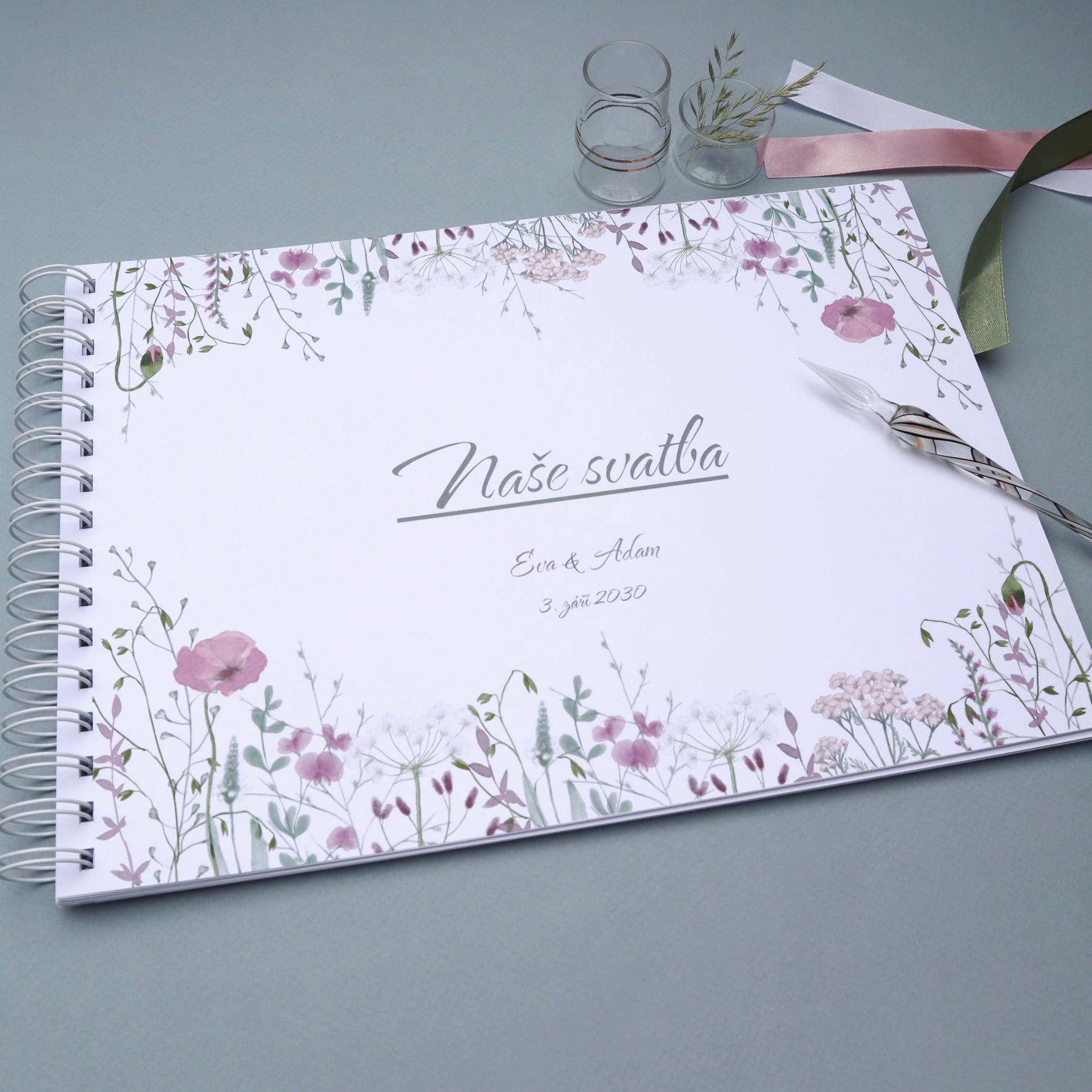 Svatební kniha hostů nebo album s autorskou grafikou lučního kvítí v růžových odstínech. Vhodné i jako narozeninové apod...