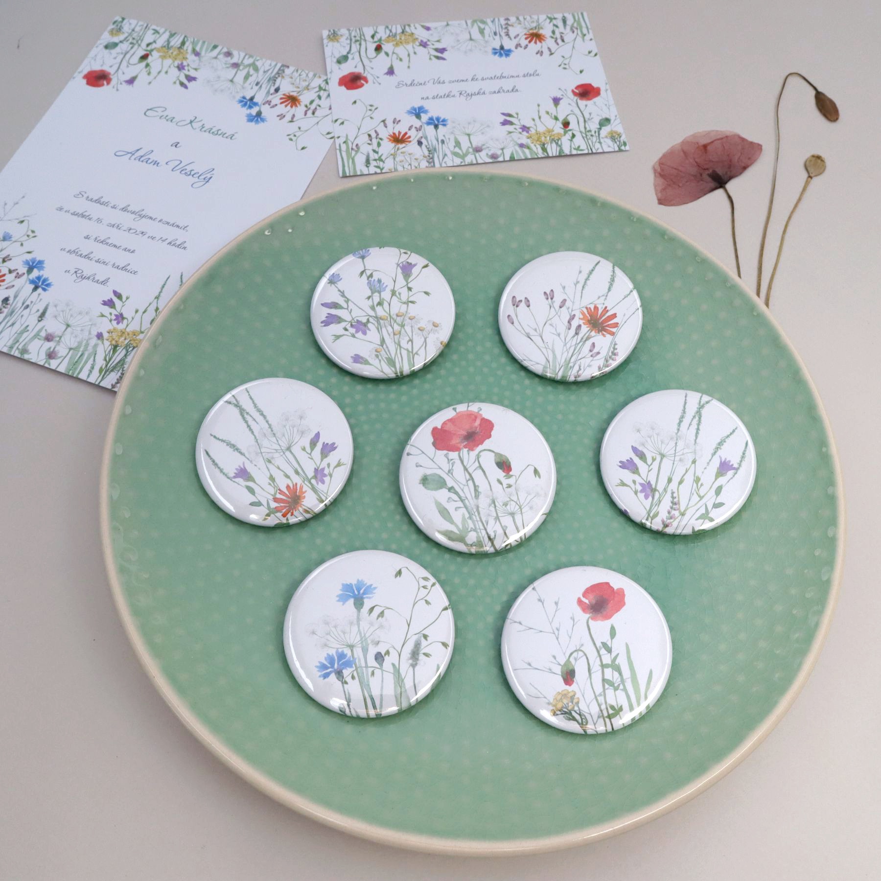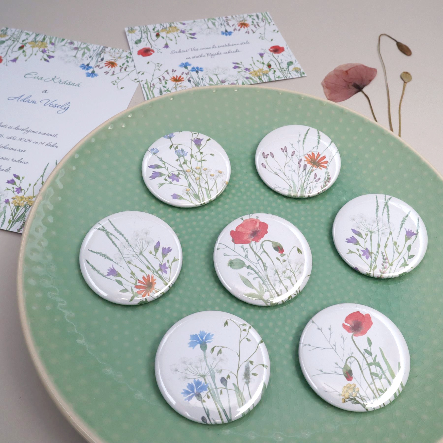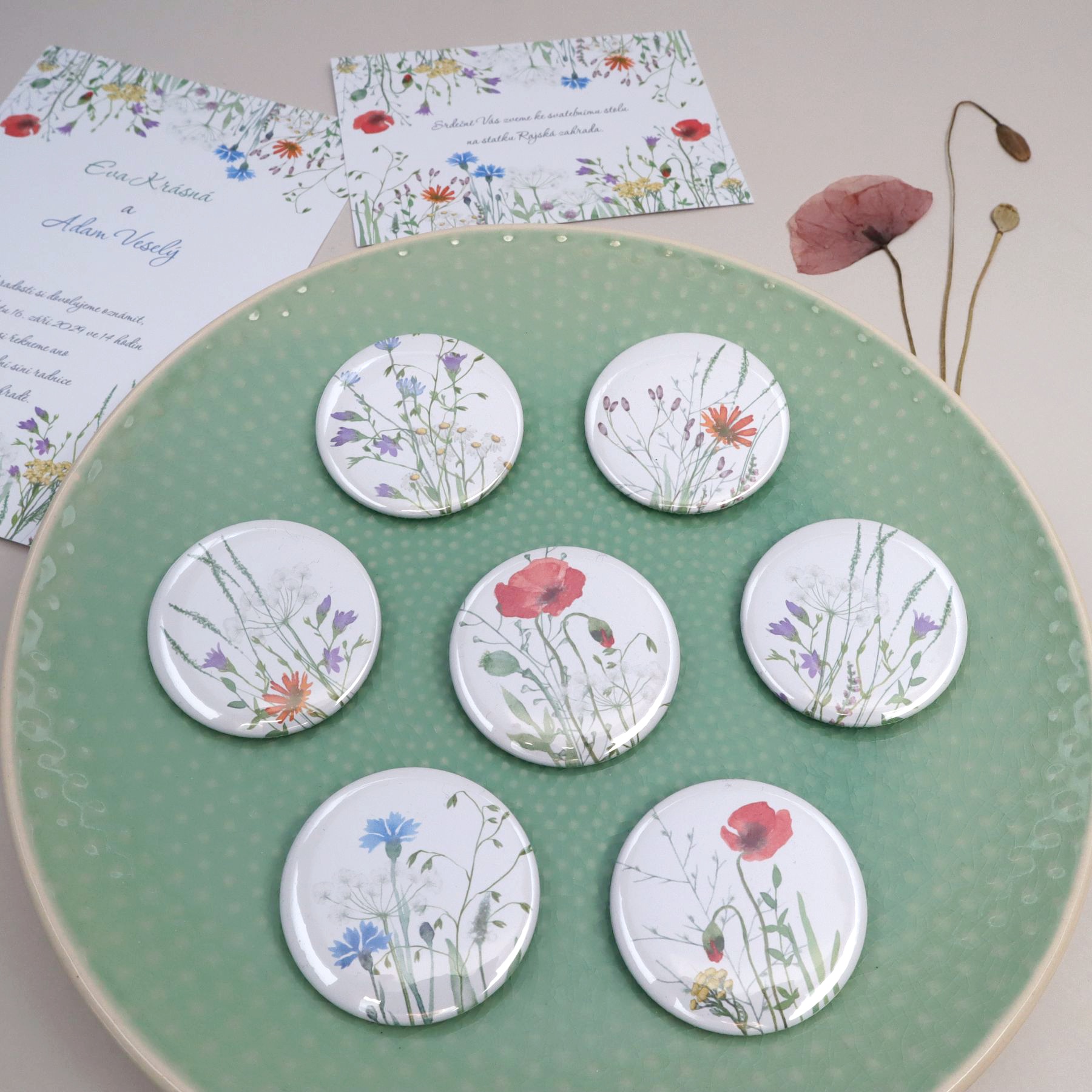Malý dárek s motivem pestrých lučních květů na památku pro Vaše svatební hosty (ale i pro kamarády, příbuzné, kolegy, zákazníky - na oslavách, kurzech, výročích), která bude Vašim milým připomínat Váš krásný svatební den....