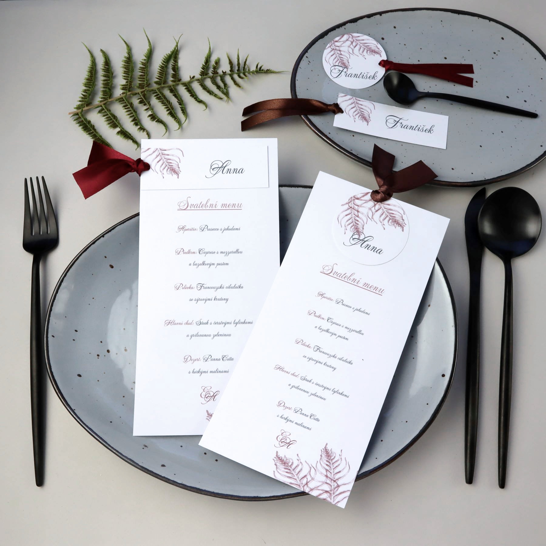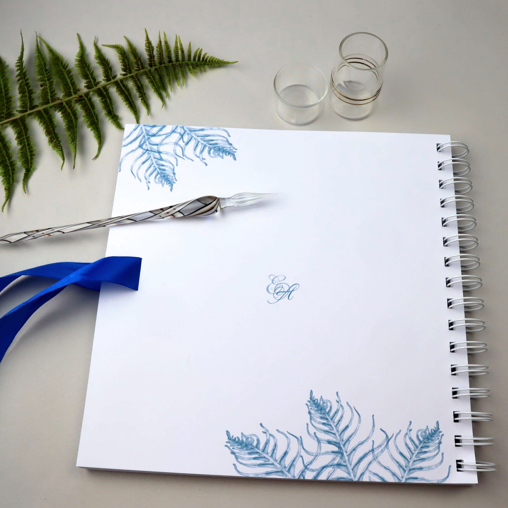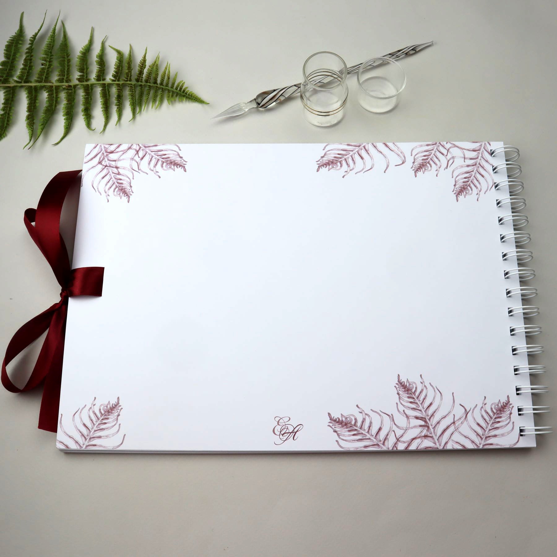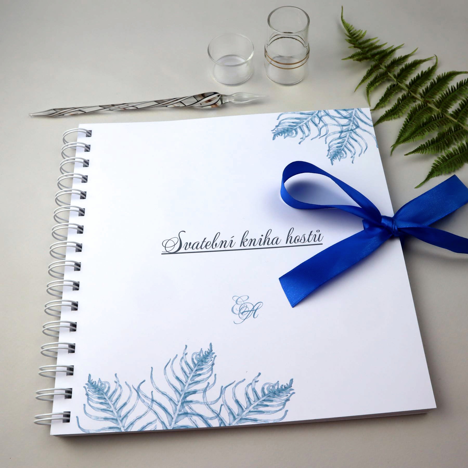 Svatební kniha hostů nebo album s motivem kapradinek v bordó nebo modré barvě. Univerzální dekor, který se bude hodit ke každé květinové výzdobě.